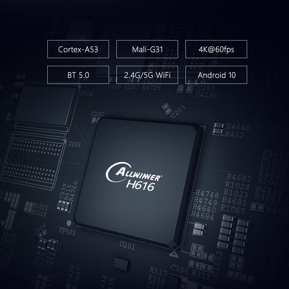 X96 Mate sử dụng CPU Allwinner H616 cho hiệu năng cao và HĐH Android 10 mới.